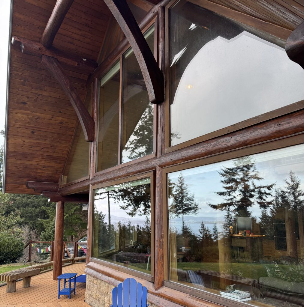 We’re getting started on a high-performance retrofit, and with this one, there’s a little bit of a plot twist! This log home, perched on a steep and exposed site along Chuckanut Drive (yes, the views are epic!), is undergoing major work. Log houses are tricky. But when we’re done, the structure will be ready to resist the high winds and weather, ensuring it’s warm & cozy for the family. They get the best of both worlds – a log cabin interior and more conventional, weather-tight exterior.