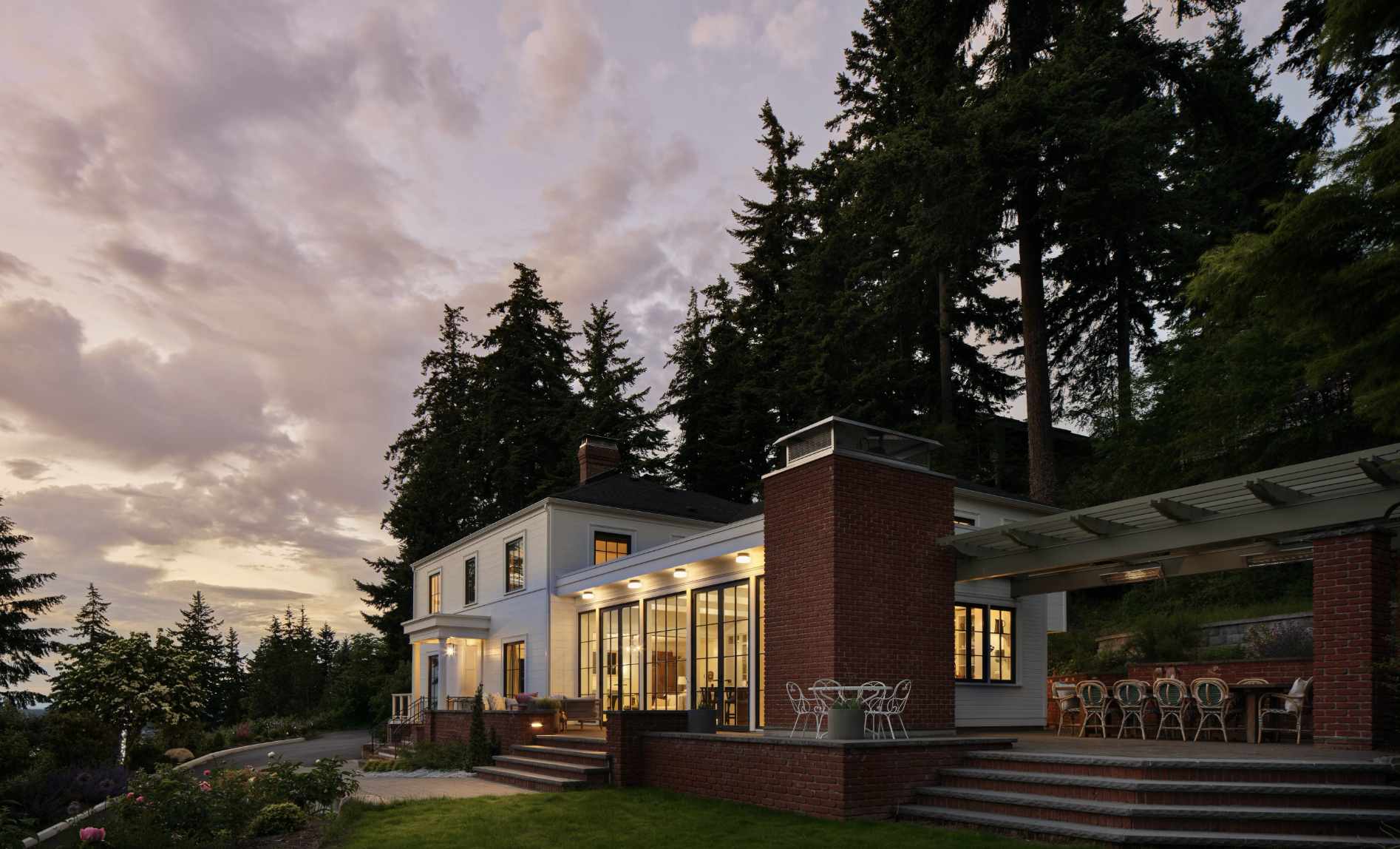 Working with Adair Orr of Armadillo Design Lab and the Lisa Staton Interior Design team, we helped rework the flow completely – moving the kitchen and main living areas to the other side of the house to take full advantage of the space (and that view!). The new layout includes a big, bright kitchen, a walk-in pantry, and a coffee bar that gets serious use. Outside, we carved a kitchen addition right into the hillside and added a wood-fired pizza oven and custom pergola for outdoor dining. It turned into a perfect little oasis.